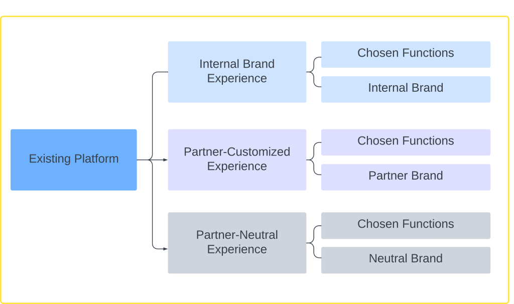 For this immediate partner, a non-branded, minimum viable product version would be built, followed by versions with additional brand representation and function as the relationship and needs change.