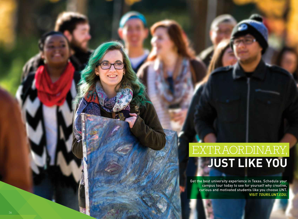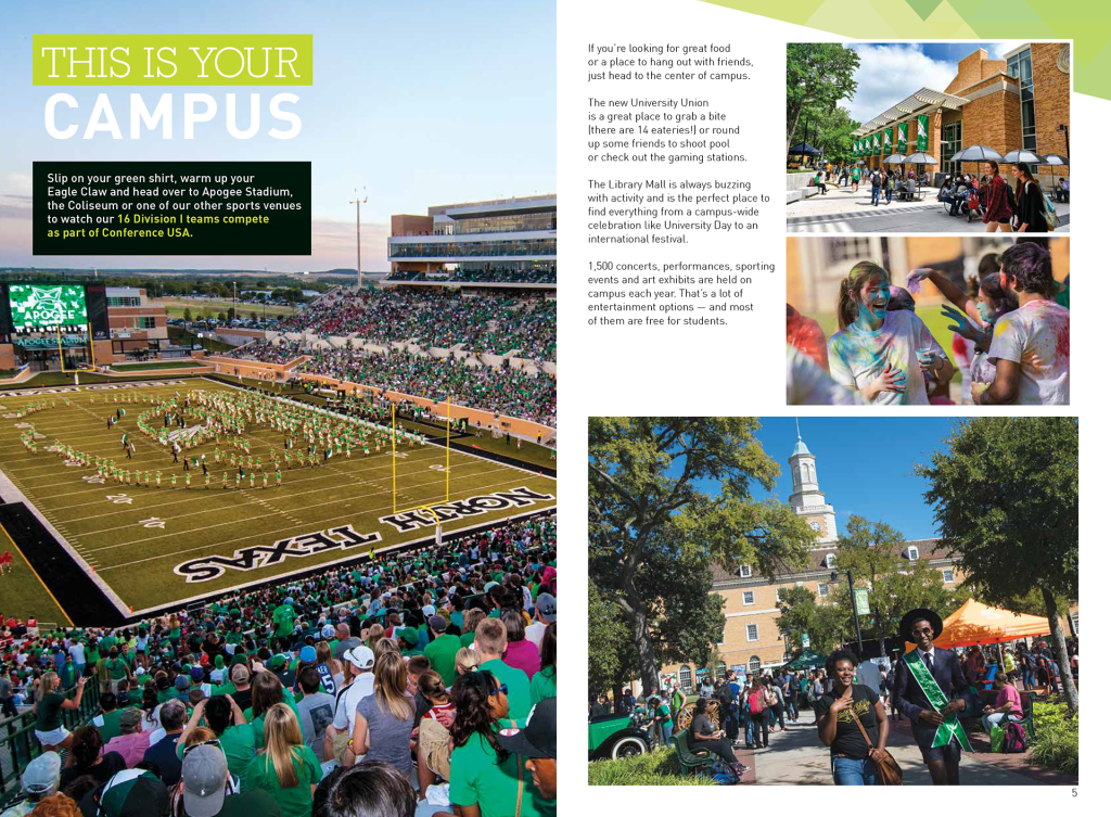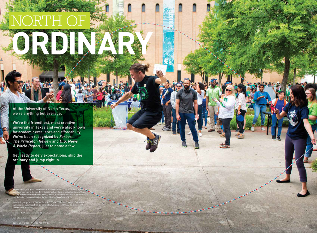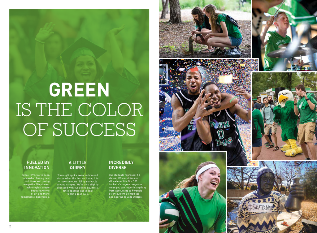 With so many universities to choose from in Texas alone, it was important to differentiate UNT from the rest by highlighting the culture of the university itself and the city of Denton and its geographic location while never losing sight of the core mission of higher education.