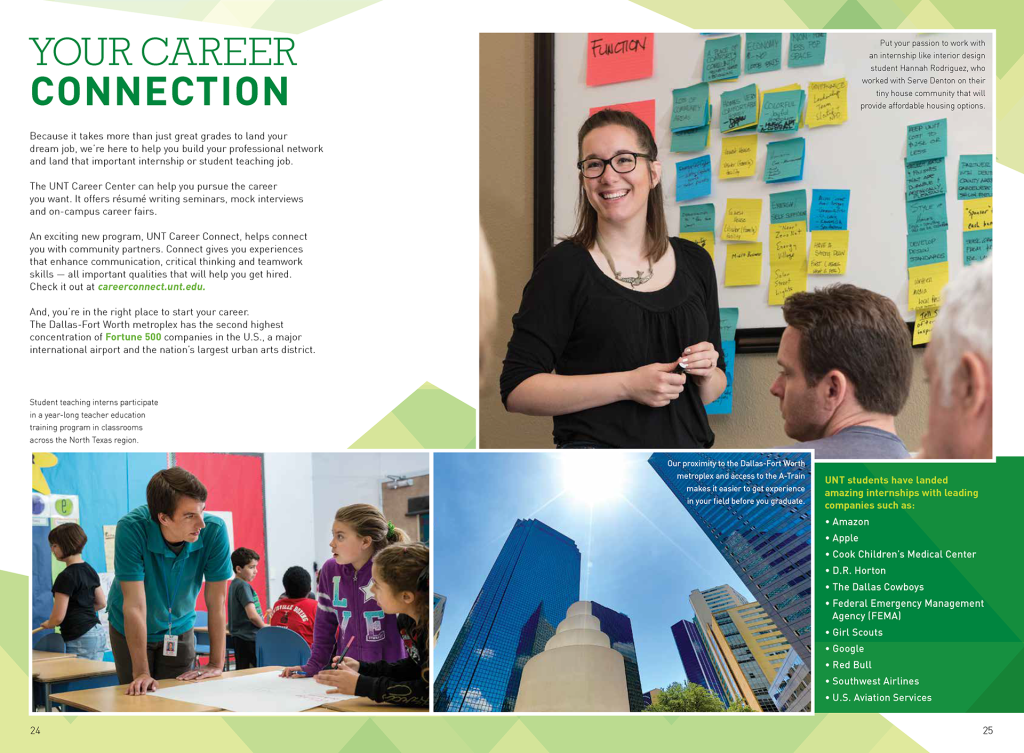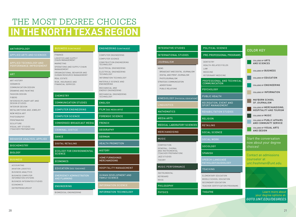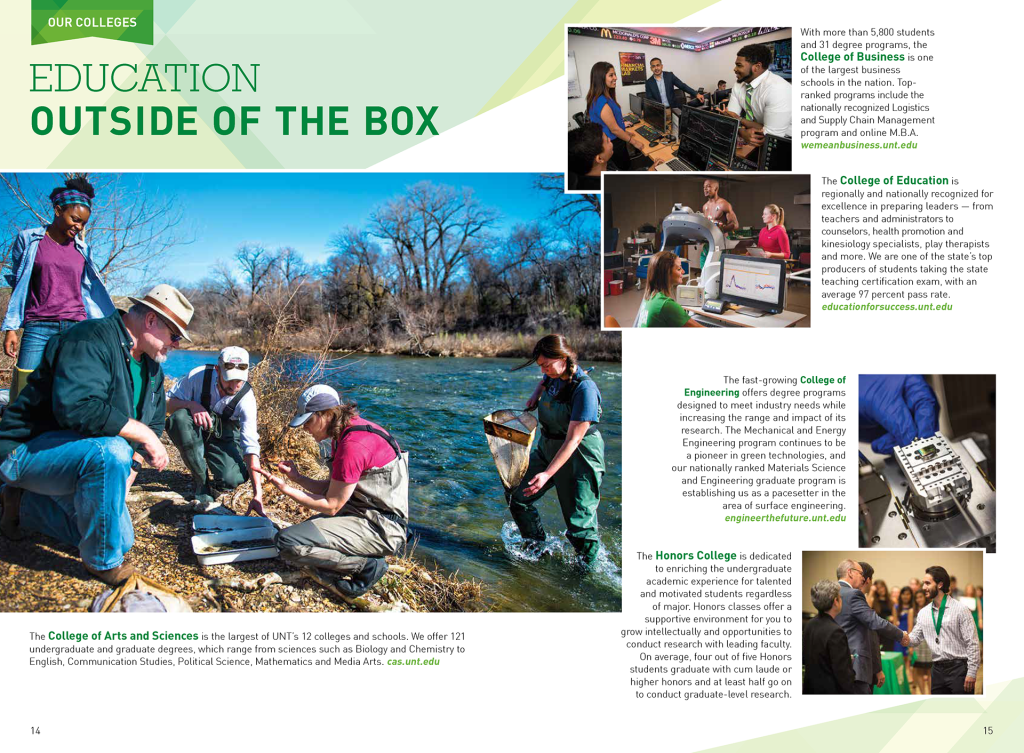 The Need: Each year, UNT conducts a recruiting campaign to bring in the right students for the right degrees to the university. The First Time in College (FTIC) Viewbook is the flagship creative for that campaign.